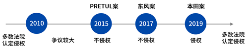 中国司法判例对于涉外定牌加工法律适用问题经历了较长时间的演化过程,其中,中国最高人民法院在三个再审案件,即:2015年的PRETUL案[i]、2017年的东风案[ii]和2019年的本田案[iii],中的裁判观点对同时期此类案件的司法审判具有指导性意义。