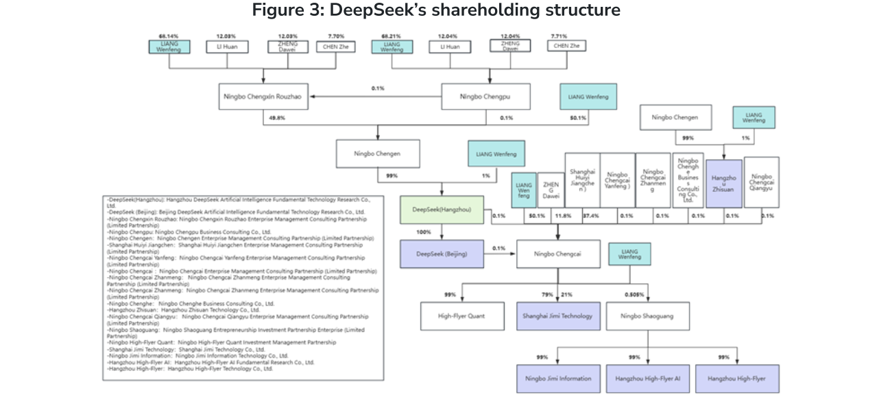 As shown in the equity penetration diagram below, DeepSeek's equity structure is characterised by multiple entities, multiple levels, and decentralisation.